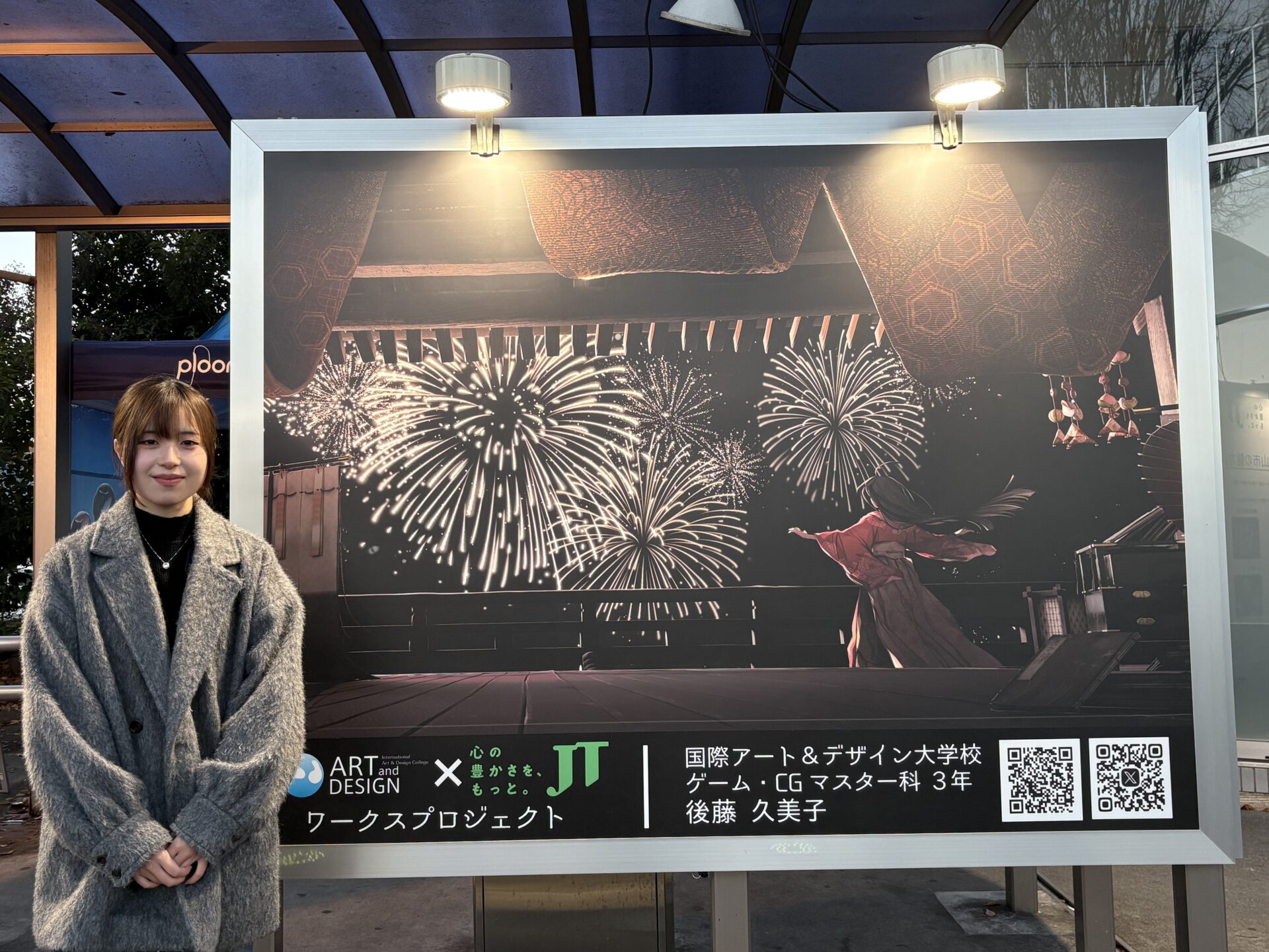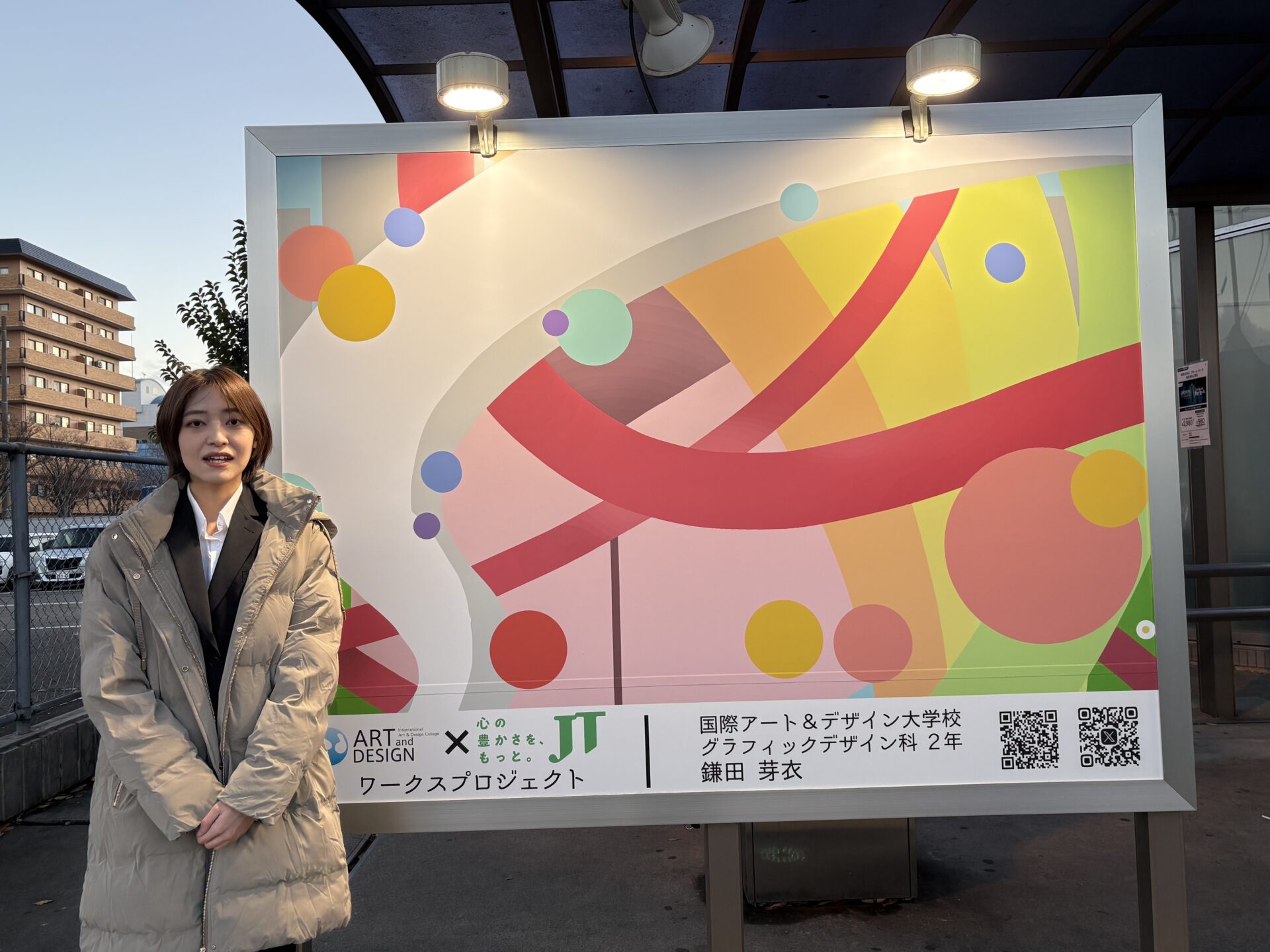 このプロジェクトは、「日本たばこ産業(JT)福島支社」様との連携により実現したもので、テーマは「あなたが想う郡山市の魅力」。地域活性化の一環として、駅を利用される方や周辺を通行する方々の目に触れる場となっています。