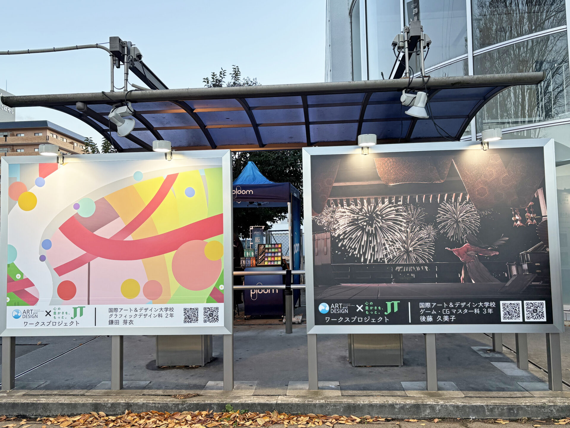 このたび本校の学生2名が制作した作品が、JR郡山駅東口の屋外喫煙所のパーティションに掲示されました✨