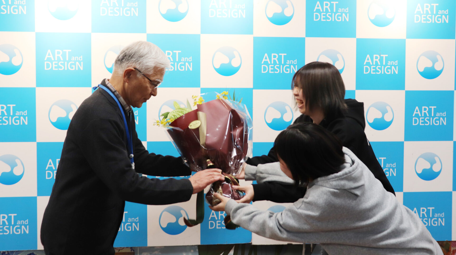 授賞式では学生代表から花束と記念品が贈呈され、