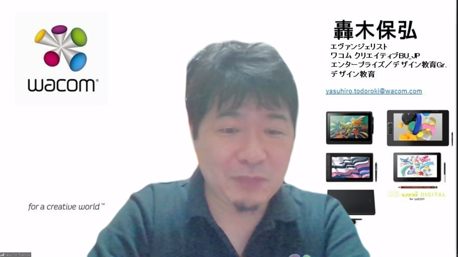 ペンタブレットや液晶タブレットで有名な株式会社ワコムの轟木保弘さんによる業界講話をオンラインで行いました。
