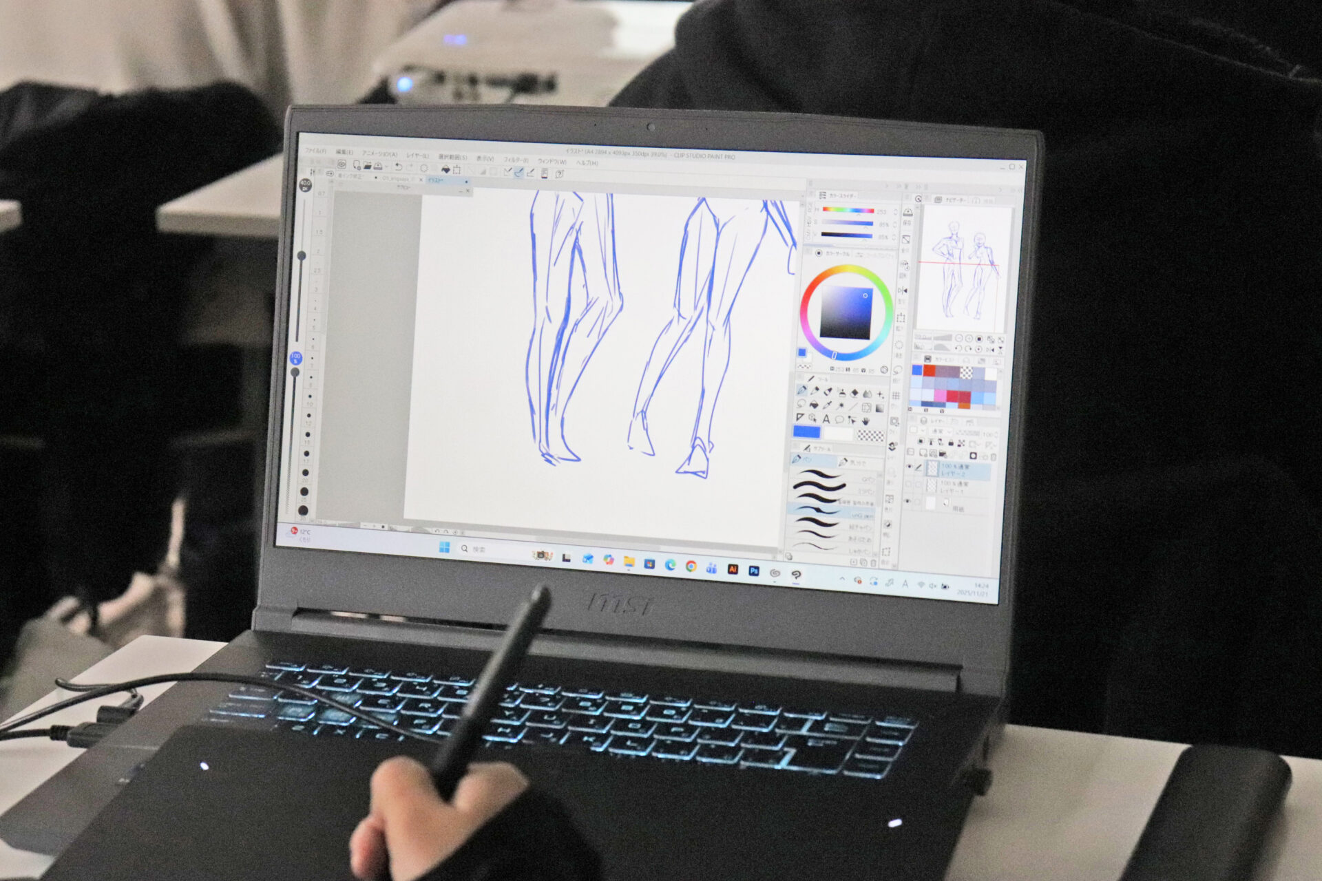 後半の授業では、イラストの基礎ともいえる「人体の描き方」をテーマに講義をしていただきました🎨
