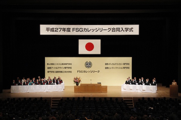本日、国際アート&デザイン専門学校とFSGカレッジリーグのグループ校4校による合同入学式が、郡山市民文化センターにて行われました(^^)