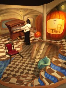 また実際にトリックアートのアトリエを見学し、制作途中の新しい作品やしかけを教えていただきました。
