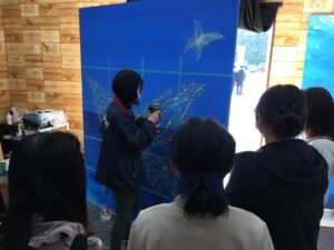作品はどれもリアルに描かれており、学生たちは一つひとつの作品に目を輝かせながら、写真をたくさん撮っていました。